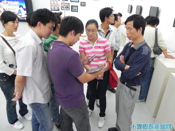 此次调研活动由系主任夏德洲带队,副主任欧阳艳阶、副书记莫足琴、项目研发团队梁铭、张明、王家旭老师以及部分学生代表参加。中国联通十堰分公司运维部经理助理兼维护中心主任尚燕兵与项目研发团队老师一起探讨项目研发方案和软件开发平台、工具等方面的问题;张湾营业厅经理张梁向师生演示了3G技术在无线通讯中的广泛应用,向大家展示了即将上市的Apple 4手机多种服务功能,带领该系师生一起参观了3G体验厅,并向师生介绍了3G技术在市场上的发展前景,提出了3G应用的广泛需求。