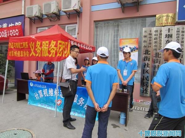 新闻网讯(学生记者 马艳)5月12日,bat365官网信息与智能工程系计算机信息协会服务团队走进东山苑社区开展义务维修电脑活动。茅箭区民政局吴局长、东山苑北街社区冯书记、茅箭区团委徐书记对活动进行了指导。