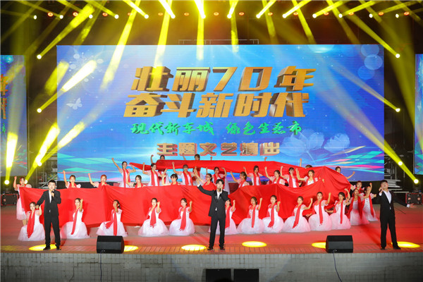 新闻网讯(文/图 记者曾刚学生记者杜凤麟)在新中国成立七十周年、十堰市建市五十周年之际,11月4日晚六点半,由学校党委宣传部、学生工作部、共青团主办,大学生成长指导中心、马克思主义学院承办的“壮丽70年,奋进新时代”主题文艺晚会在天一剧场举行。全体校领导、学校近万名师生观看了这次晚会。