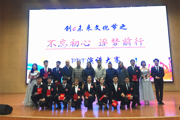 新闻网讯(通讯员赵晨)“青春有得意,也有挫折,只有经过磨难的洗礼,才能迸发出青春的潜力……”12月6日晚,bat365在线中国官网登录入口创e未来文化节之“不忘初心,逐梦前行”PPT演讲大赛在会议中心举行,bat365在线中国官网登录入口院长刘竹林、党总支书记莫足琴、学工办主任龚国钧、专业带头人范志庆和王家旭老师、美和易思特色专业学工部副主任曹艳及2019级全体师生参与了本次活动。