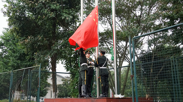 大会在嘹亮的国歌中拉开帷幕,全体师生共同参加了升国旗仪式。