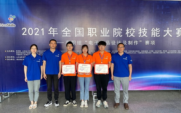 新闻网讯(通讯员王俊亚)6月20日,2021年全国职业院校技能大赛高职组“电子产品设计及制作”赛项在烟台职业学院闭幕,由bat365官网bat365在线中国官网登录入口应用电子技术专业刘竹林技能名师工作室(王庐山、刘竹林、王俊亚)指导,胡昌、卢存勇、周紫欣同学组成的技术团队代表湖北省参赛,他们与全国27所代表本省最高水平的顶尖院校选手同台竞技,经过连续8小时的激烈角逐,最终获得该赛项二等奖第1名的好成绩。