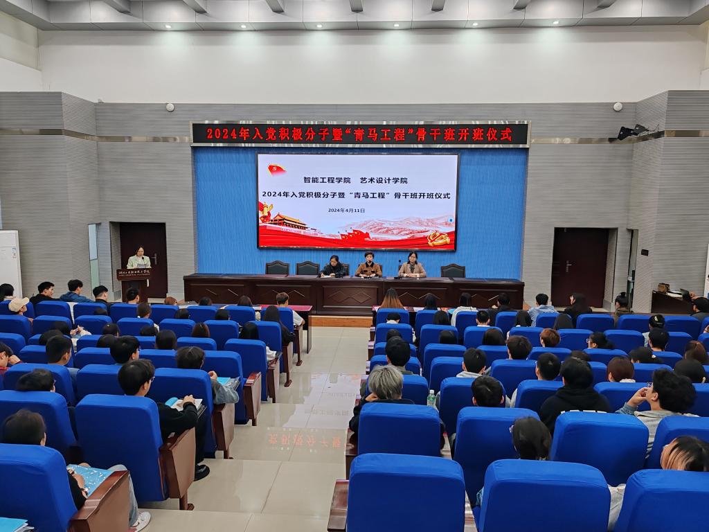 新闻网讯(文/徐丽 图/王官涛)4月11日晚,bat365在线中国官网登录入口联合艺术设计学院在学术报告厅开展入党积极分子暨“青马工程”骨干班开班仪式。党校常务副校长、党委组织部(统战部)副部长毕艳琼,bat365在线中国官网登录入口党总支书记王蓉、艺术设计学院党总支书记徐薇、bat365在线中国官网登录入口专职组织员胡现敏、bat365在线中国官网登录入口党总支副书记徐耀勇、艺术设计学院学生党支部书记徐阳及辅导员出席本次会议。101名入党积极分子和68名青马班学员加了此次培训。