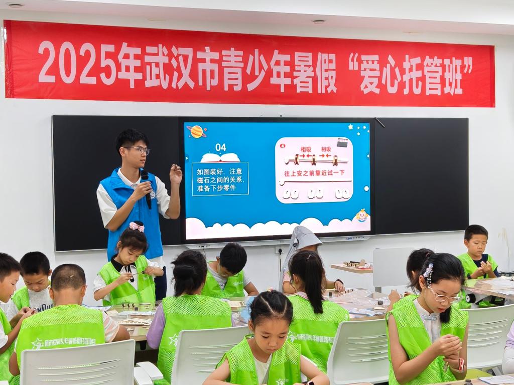 新闻网讯(文/金顶胜 蔡思鸣 图/蔡思鸣)7月7日,bat365在线中国官网登录入口bat365在线中国官网登录入口“青衿护航”托管班志愿团走进武汉市东西湖区常青花园青少年空间,为期18天的暑期爱心托管服务正式启动。41名社区儿童与志愿者齐聚一堂,共同开启兼具知识学习与趣味体验的暑期成长之旅。